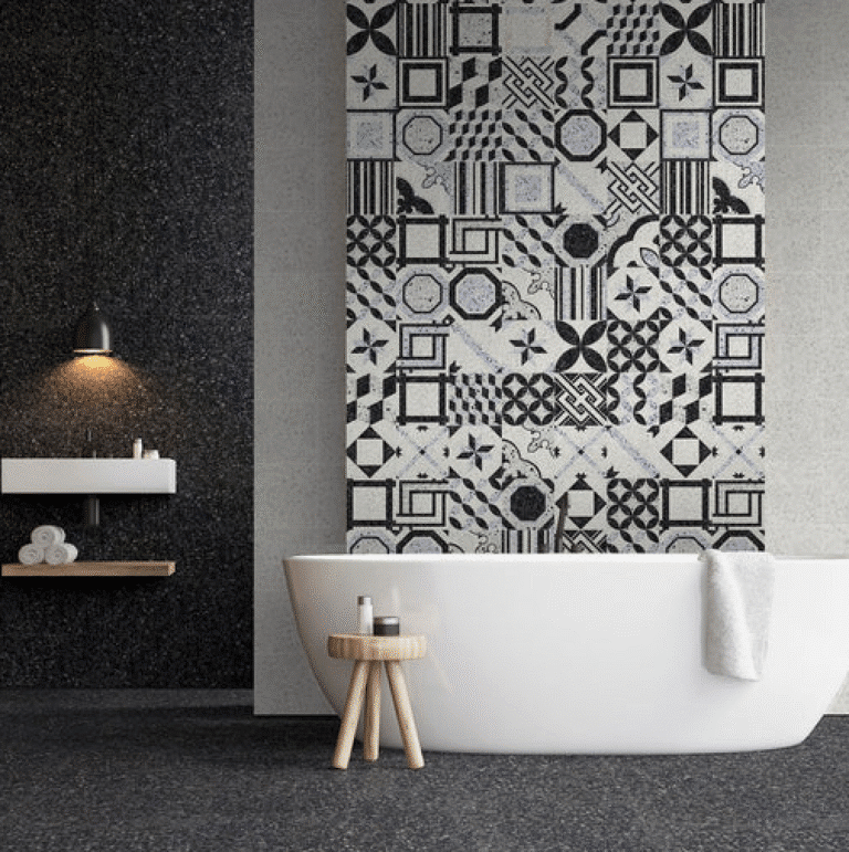 Carrelage imitation terrazzo. Non poreux, sans traitement.