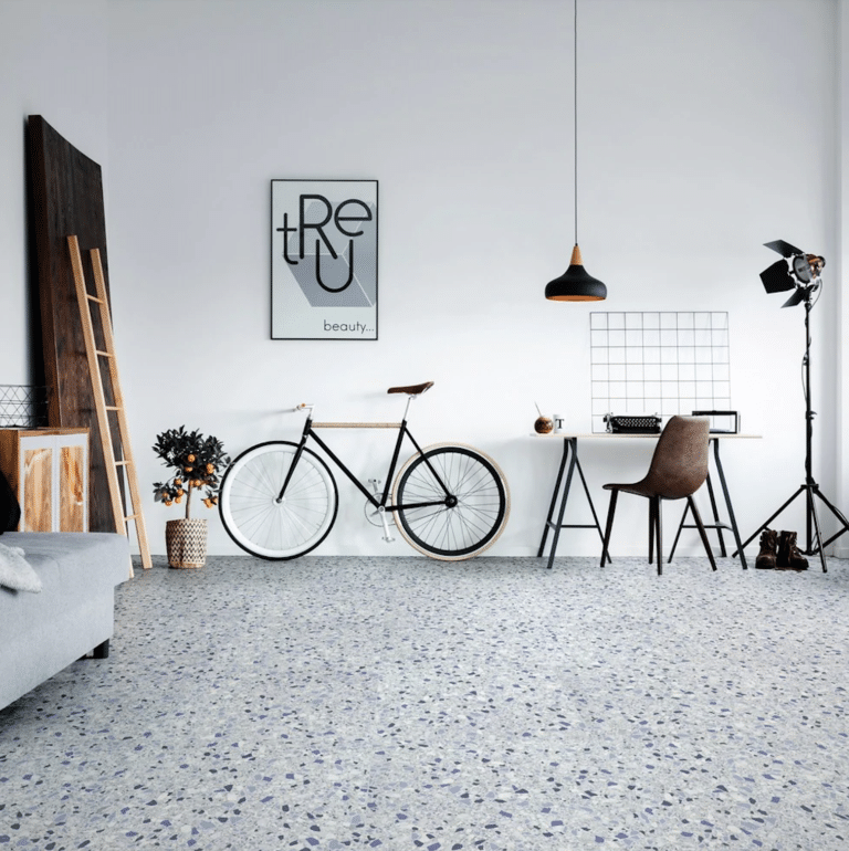 Carrelage imitation terrazzo. Non poreux, sans traitement.